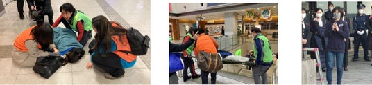 <演習イメージ> ※JALと慶應義塾大学がタイアップして他空港で実施した地震津波防災演習の模様