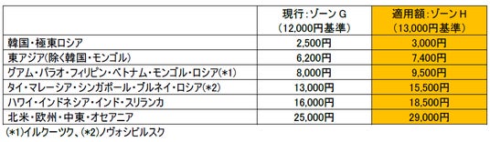 運賃額 : 日本発旅程 (金額はお一人さま一区間片道あたり)