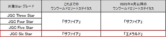 2. 2025年4月より、JGC Six Star会員の方は、JMB FLY ONステイタス「JMBダイヤモンド」を新
