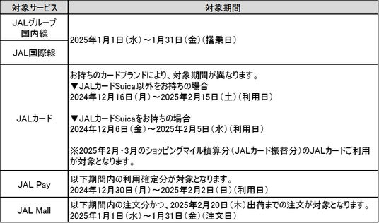 キャンペーン登録のうえ、対象期間中に対象サービスをご利用されたJALマイレージバンク会員の方