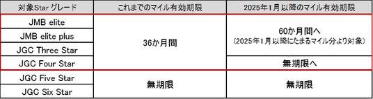 2024年1月からこれまでの航空機利用に加えて、日常生活のさまざまなサービスのご利用でたまる生涯実績ポイントによりステイタスや特典をご提供する「JAL Life Status プログラム」(*)を開始し、おかげ様で2025年1月に1周年を迎えます。より一層、お客さまの日常に寄り添えるプログラムを目指し、2025年1月よりJAL Life Status プログラムで対象のStar グレード(ステイタス)ごとの特典内容を一部拡充します。