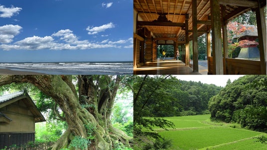 一方、南部は平坦な田園地帯が広がり、美しい白砂青松の続く九十九里海岸に面しています。