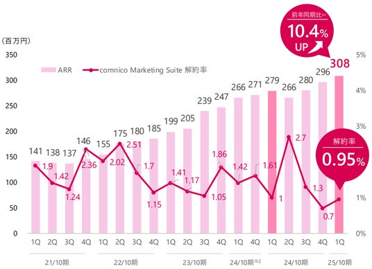 「コムニコ マーケティングスイート」は売上も順調に伸ばし続けており、2025年1月と2024年1月との比較で、ARR(年間経常収益)は10.4%、2025年1月は3億円を突破いたしました。また、解約率は0.95%と1%を切っています。