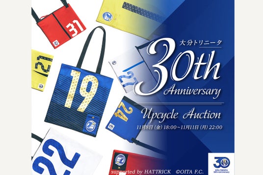 バリュエンスジャパン株式会社(本社:東京都港区、代表取締役:嵜本 晋輔)が運営するスポーツチーム公認オークション「HATTRICK Auction(https://auction.hattrick.world/)」は、大分トリニータとの「大分トリニータ 30th Anniversary UPCYCLE AUCTION」を11月8日(金)より開催いたします。