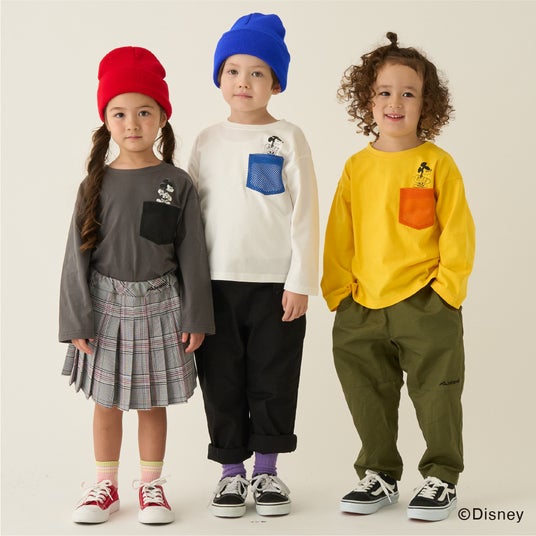 POPなミッキーマウスやミニーマウス、可愛らしいディズニープリンセスのグラフィックを【ミニマル】らしいカラフルな色使いと大人好みするデザインに!今から長く着られる半袖・長袖Tシャツでご用意しました。