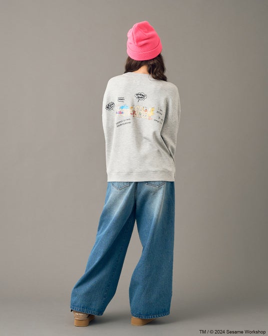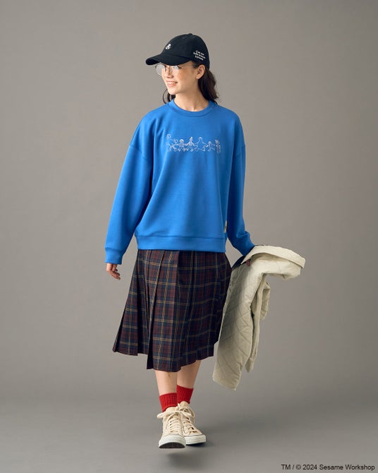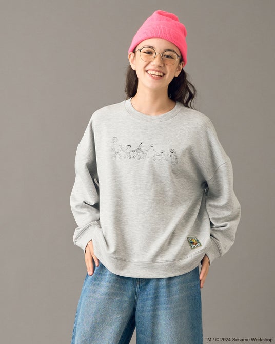 前後に贅沢にセサミストリートのプリントや刺繍をあしらったダンボール素材のプルオーバー。裏毛より柔らかく軽い着心地で、分厚すぎない生地の為、インナーにロングTシャツやシャツを重ねることでロングシーズンご着用いただけます。広めの身巾がトレンド感とカバーアップの両方を叶えてくれます。