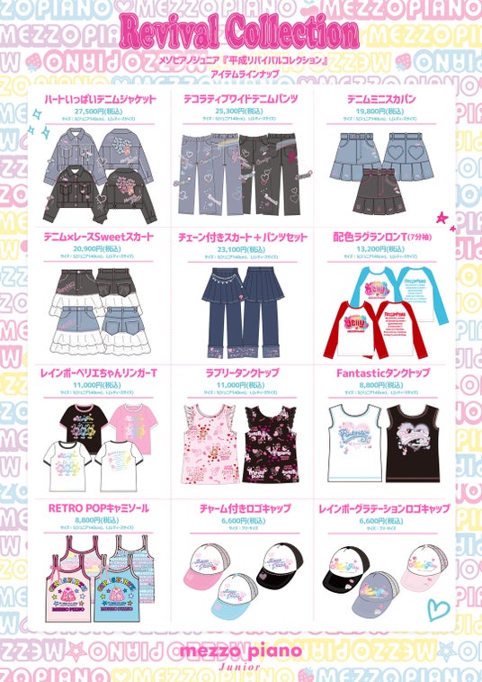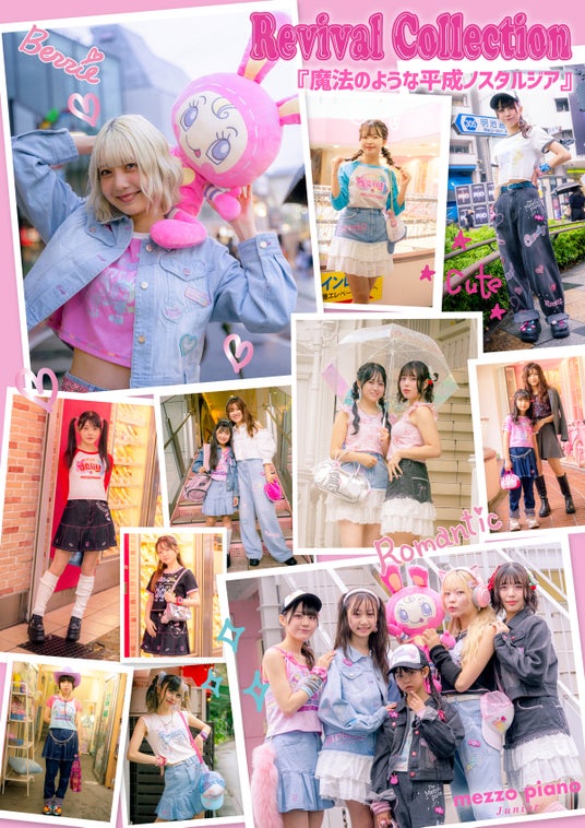 株式会社ナルミヤ・インターナショナル(本社:東京都港区芝公園/代表取締役執行役員社長 國京 紘宇)のブランド「mezzo piano junior(メゾ ピアノ ジュニア)」が、2000年代前半に一世を風靡した平成ファッションを復刻させた『平成リバイバルコレクション』の発売を発表。この特別なコレクションは、10月25日(金)より公式オンラインストア「ナルミヤオンライン」にて受注販売を開始します。アイテムの発売に先駆けて、10月12日(土)より一部メゾピアノジュニア直営店にて、『平成リバイバルコレクション』の商品をご覧いただける機会をご用意しました。