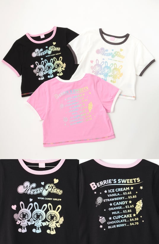 絶妙な配色が魅力のレインボーなベリエちゃんにトキメク、リンガーTシャツ。コンパクトなシルエットで、バックプリントも気分が上がる1枚に。