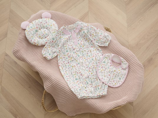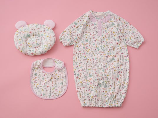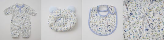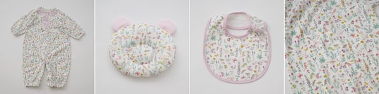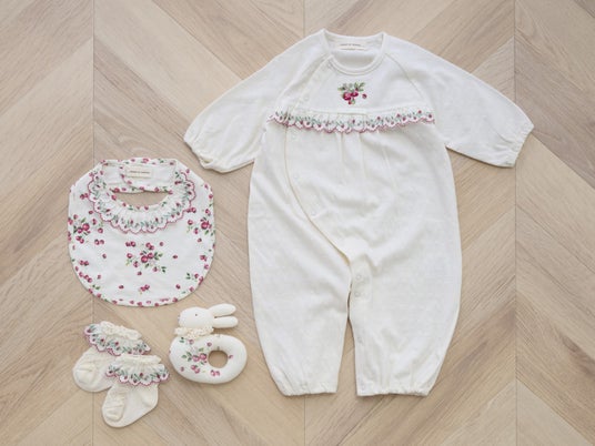 野イチゴ柄がかわいらしいオーガニックコットンを使用したベビー4点セット