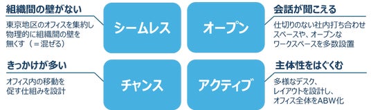 ※Activity Based Working(ABW):出社時に決めた座席を退社まで使用するフリーアドレスとは異なり、その時々の業務内容に合わせて最適な場所を自由に選択できる働き方。