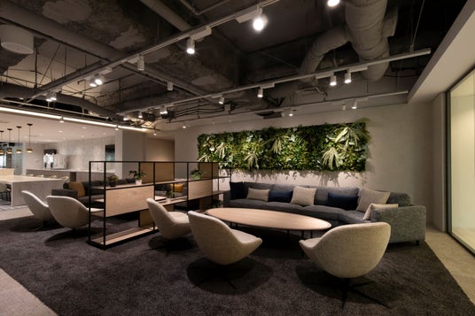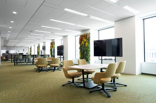 また、新オフィスの象徴的な場所として、グループ従業員が利用できる社員ラウンジ「箱崎CROSS」を設置いたしました。従業員同士が「交わる」「かかわり合う」という意味を込めて「CROSS」(クロス)と名付け、事業会社の垣根を超えた交流の機会を増加させ、活発なグループ間共創の起点となる場を目指しています。
