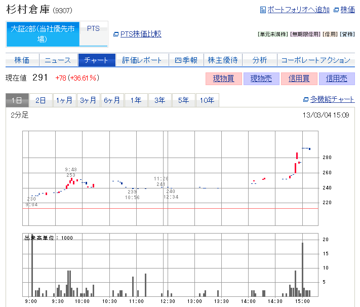 週末の、みんかぶ個人予想で買い予想の第一位は、9307杉村倉庫でした。 結果は、年初来高値更新後に、STOP安でしたね。 個人的には、週末の時点で、買い予想って、「馬鹿じゃねーのwww」 位に思っていたので、まぁ、想定通りの動きなんだけど、(仕手株で、十分上がりきった状態に見えましたので。) これって、みんかぶの個人予想()のレベル感が、いかに低いかってことを 表しているんだなーって思いましたね... ...続きを読む