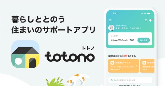 入居者アプリ「totono」は、不動産管理会社と入居者を繋ぐスマートフォンアプリケーションです。入居者はこれまで不動産管理会社とのやりとりは電話や書類手続といった手段に限られていましたが、入居者アプリ「totono」を利用することでアプリ内から契約内容が確認でき、不動産管理会社への問い合わせや各種申請もアプリ内で行うことが可能になります。また、不動産管理会社にとっては情報の一元管理や電話対応の抑制、ペーパーレスに繋がり、入居者満足度向上と業務効率化を同時に実現します。