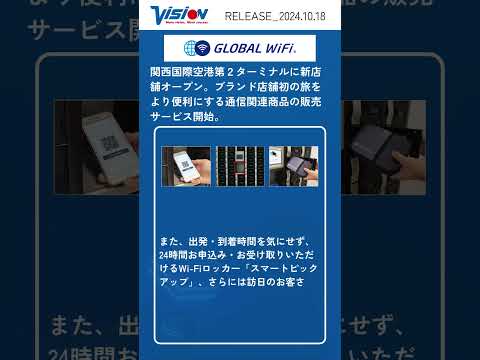 株式会社ビジョン、「グローバルWiFi(R)」関西国際空港第2ターミナルに新店舗オープン。ブランド店舗初の旅をより便利にする通信関連商品の販売サービス開始。
