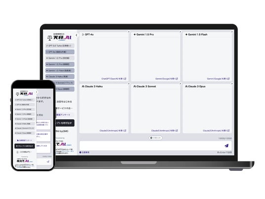 「天秤AI byGMO」は、14個の生成AIモデルから最大6つを同時に実行できる機能で、1つのプロンプト(指示文)に対する回答を比較しながら、最適な生成AIモデルの回答を選択することができます。