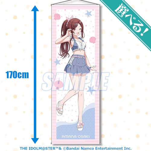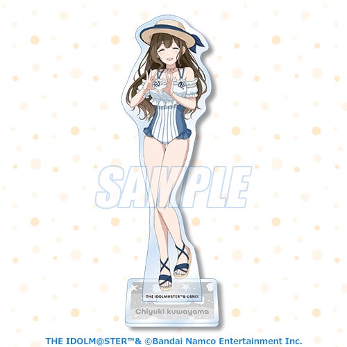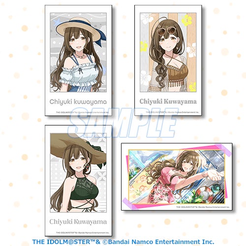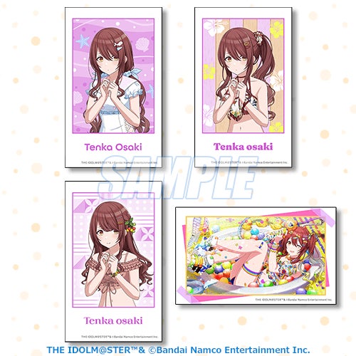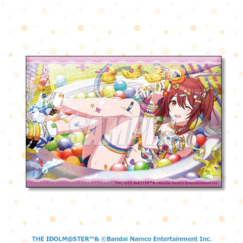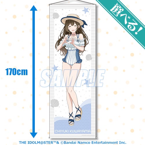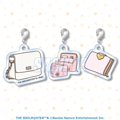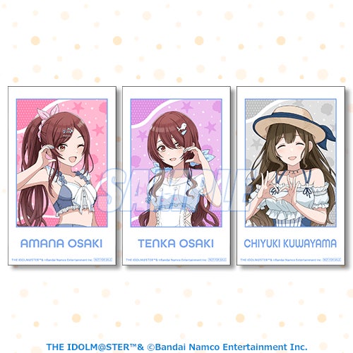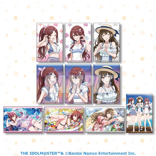 商品は水着衣装に身を包み、ユニット別スタイルブックの表紙にもなった「大崎甘奈」「大崎甜花」「桑山千雪」の特大タペストリーやアクリルスタンドのほか、バッグの中身ページで紹介されたアイドルたちが持ち歩いている愛用品のイラストを使用した3個セットのアクリルミニチャーム、ゲーム内で使用された歴代の水着イラストやカードイラストを使用したミニブロマイドセットやスクエア缶バッジ等、オリジナルグッズを多数展開しております。