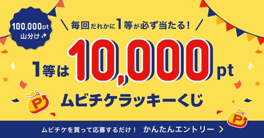 株式会社ムービーウォーカー(本社:東京都千代田区、代表取締役社長:五十嵐淳之)は、対象期間内にムビチケ前売券(オンライン)、またはムビチケ鑑賞券を購入するとムビチケポイントが当たる「ムビチケラッキーくじ」のデザインをリニューアルいたしました。