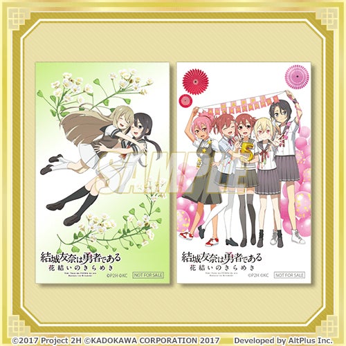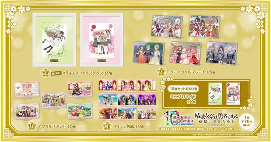 賞品は、『結城友奈は勇者である 花結いのきらめき』の周年キービジュアル、周年スチルイラストを使用したオリジナルグッズとなります。