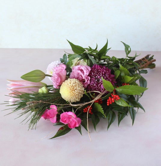 さらに、長もちする花をメインに選んでいるので、松の内が明けたら、お好きなようにいけなおして楽しんでください。