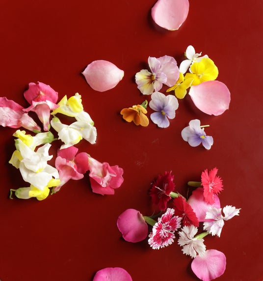 華やかなおせち料理の数々を彩るのは、食用花専門店『エディブルガーデン』のエディブルフラワーたち。完全無農薬で栽培されたもので、すべて食べられます。花おせちだからこそ、3段それぞれの段に、違うエディブルフラワーを添えました。