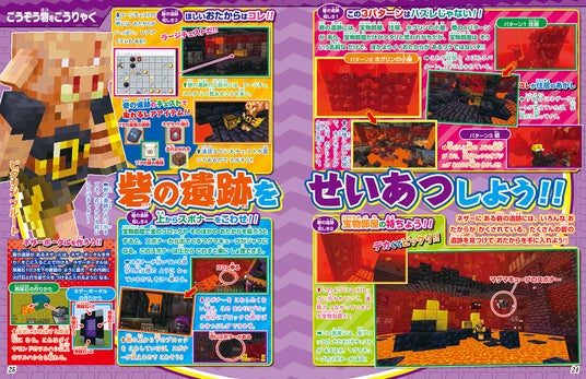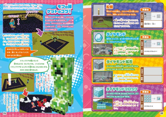 本誌では、バトルのテクニックや構造物の攻略などサバイバルに関する最新情報を大ボリュームでお届け! さらに『マイクラ』生活の基本も徹底紹介。これから始める人はもちろん、ベテランプレイヤー向けのワンポイントアドバイスなど、オススメの生活のイロハをバッチリ紹介しています。