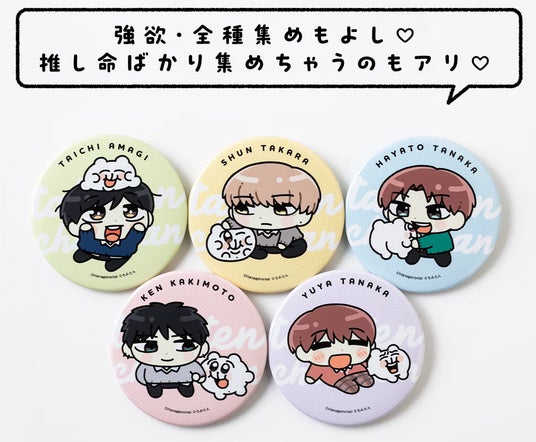 ・『高良くんと天城くん』×『ちみたん』 缶バッジ 全5種(高良瞬、天城太一、柿本健、田中優也、田中隼人):550円(税込)