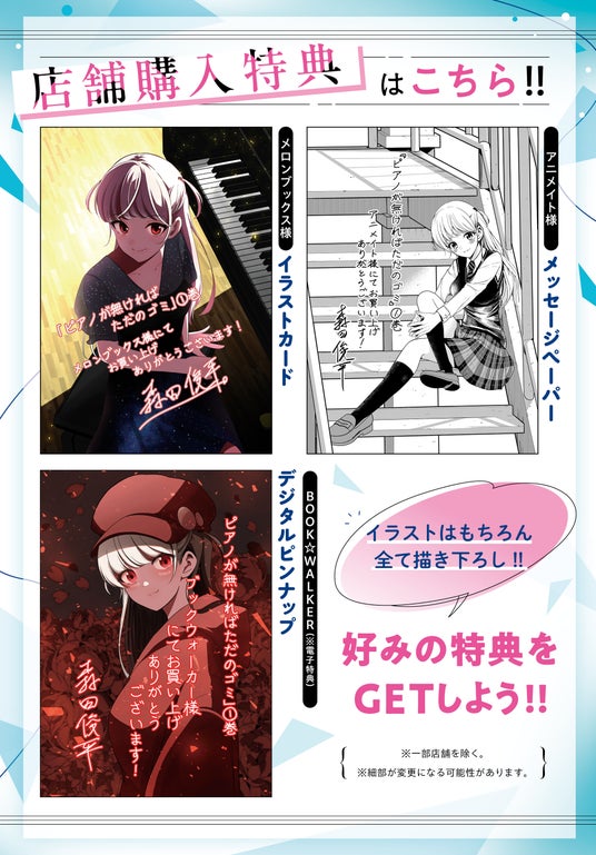 株式会社KADOKAWA(本社:東京都千代田区、取締役 代表執行役社長 CEO:夏野剛)が運営する漫画アプリ「カドコミ」にて絶賛連載中の全く新しい音楽漫画『ピアノが無ければただのゴミ 1』(著:森田俊平)が2025年1月7日(火)に発売されました。