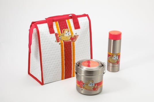 レトロな雰囲気がかわいいデザインのお弁当セット(超軽量マグボトル350ml・ステンレスランチボックス・不織布ランチトートバッグ)の登場。