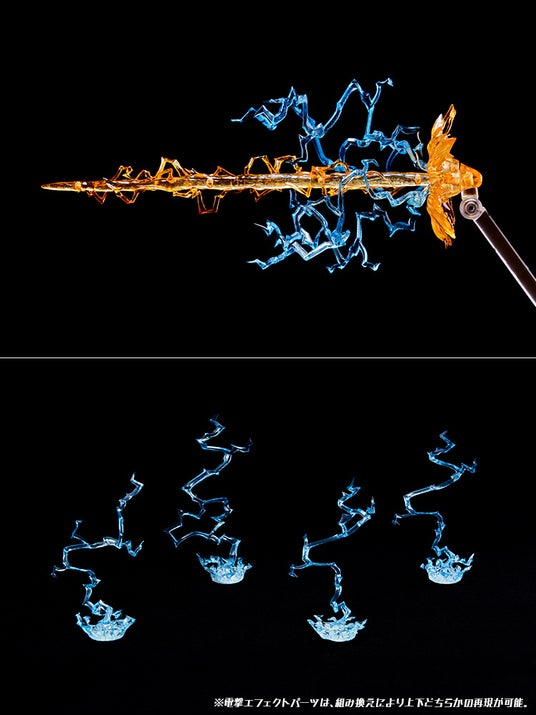 3.組み換え式の「電撃エフェクト」パーツにより、「超電磁砲(レールガン)」や周囲に放出される「電撃」を再現可能。