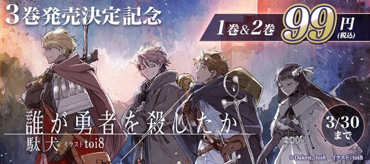 総合電子書籍ストア「BOOK☆WALKER」にて、『誰が勇者を殺したか』1巻&2巻の電子版を今だけ99円(税込み)で読むことができます。