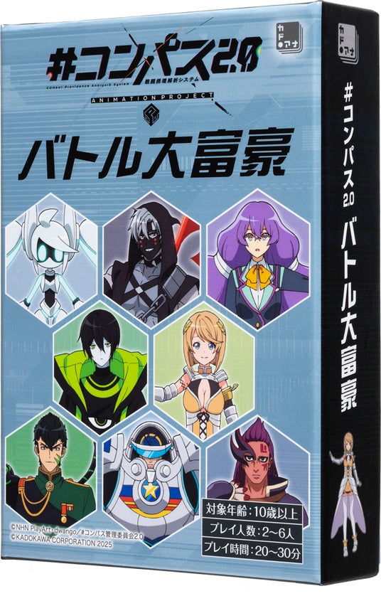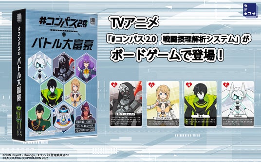 株式会社KADOKAWA(本社:東京都千代田区、取締役 代表執行役社長 CEO:夏野剛、以下KADOKAWA)は、アナログゲームブランド「カドアナ」から、TVアニメ『#コンパス2.0 戦闘摂理解析システム(以下、#コンパス2.0)』を題材とした対戦型カードゲーム『#コンパス2.0 バトル大富豪』を2025年4月26日(土)、27日(日)開催のニコニコ超会議2025で先行販売、その後、2025年5月30日(金)より全国の書店、ECサイトにて発売します。