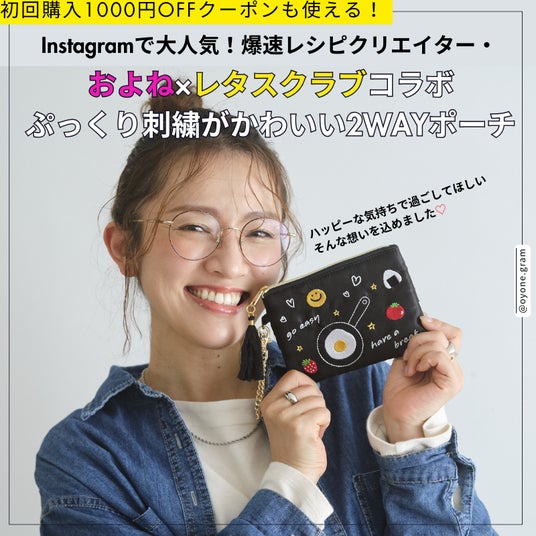 爆速レシピクリエイター・およねさん×レタスクラブコラボ「ぷっくり刺繍がかわいい2WAYポーチ」▶
