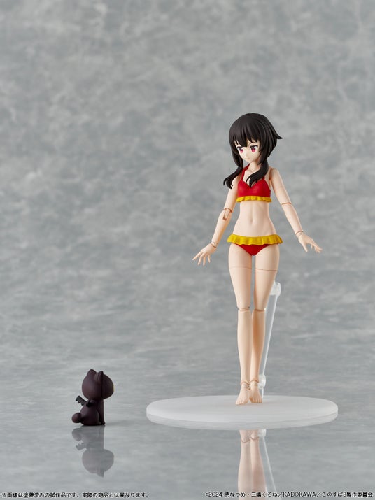 ・商品内容:本体×1、水着ボディ×1、表情パーツ×4種、手首パーツ×3種、水着用手首パーツ×3種、帽子×1、マント×1、めぐみんの杖×1、ちょむすけ×1、ディスプレイ用台座×1