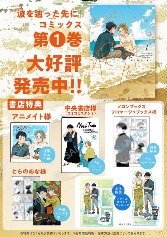 ジーンピクシブにて好評連載中ゆるキュンBL作品『波を辿った先に』(著:鳥谷コウ)のコミックス1巻が、5月27日(火)に発売いたしました。また、発売に伴い3種類のPV(CV:木村太飛、古田一晟)をYouTube、SNS等にて公開しています。
