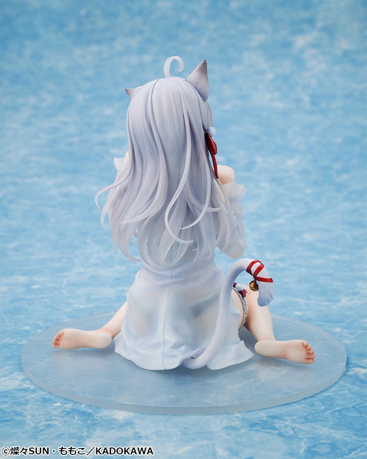 本アイテムは、原作イラストレーター・ももこ先生が原作小説のリバーシブルカバー用に描き下ろしたイラストをモチーフに、アーリャが猫耳水着姿で猫ポーズをしている姿を立体化。恥ずかしそうに上目遣いでこちらを見つめる表情を丁寧に再現!はだけたシャツもクリア素材で表現しており、ももこ先生の透明感のあるイラストの雰囲気を再現しています。