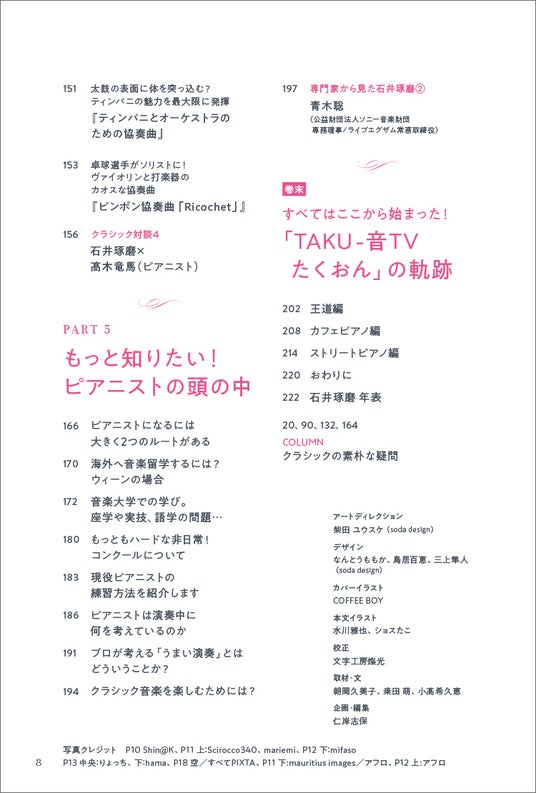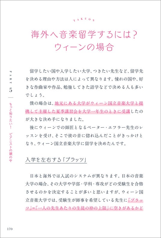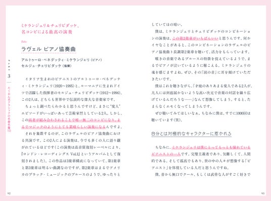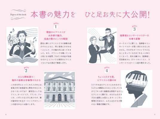 さらに、ピアニストになる方法やプロ演奏家のルーティンなど、ピアニストの頭の中も覗き見ることができ、盛りだくさんの情報でクラシック音楽を身近に感じることができる一冊です。