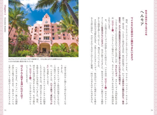 ハワイの基礎知識を学ぶと一層各章の理解が深まるはず。旅行者はもちろん、フラをはじめとするハワイ文化に興味のある方、いつかハワイを旅したいと思っている方、すべての方に知ってもらいたい情報をたっぷり収録しています。
