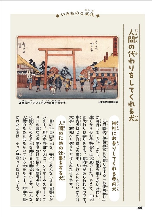 いきものと文化のコラムでは、「猿回しとおまじない」「人の代わりにお参りする参内犬」「お盆のお供え物、精霊馬と精霊牛」など、文化のなかで大切にされてきた、人といきものの関係を紹介。文理の垣根をこえて、「いきもの」「ことば」を楽しむ要素がもりだくさんです!