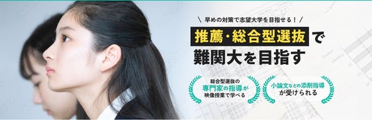 今や難関大も一般と総合型の二刀流での受験がねらい目。必須の小論文対策などが映像授業で効率よく学習できる、難関大特化の推薦・総合型対策! 小論文過去問の演習課題で添削指導も可能。