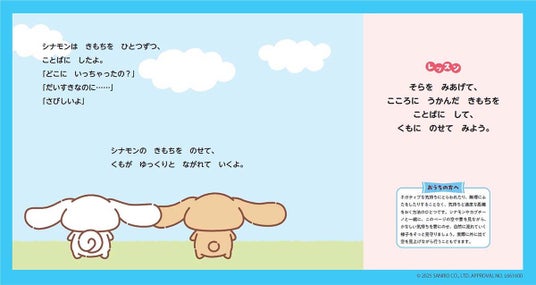 対象は4歳~。サンリオキャラクターズ・シナモロールと一緒に、幼少期に理解が深まる感情のひとつ「かなしい」気持ちについて知り、かなしみとの上手な付き合いかたを、親子で学ぶ絵本です。