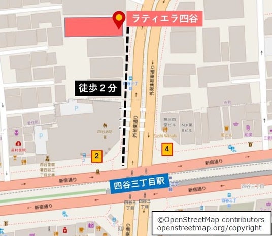 本物件は、東京ガスグループの福利厚生施設として使用していた東京ガス四谷クラブを建替えたもので、最寄り駅である東京メトロ丸ノ内線「四谷三丁目駅」からは徒歩2分という立地にあり、多様なライフスタイルに対応できるよう1Kから3LDKまで幅広いプランを用意した賃貸住宅です。
