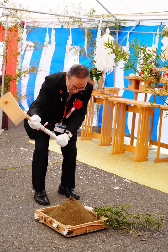 メタウォーター株式会社(社長:山口 賢二、本社:東京都千代田区)を代表とする企業グループが、長野県千曲市と坂城町で構成する葛尾組合より受託した「葛尾組合リサイクルセンター建設工事」(以下、「本事業」)の着工にあたり、安全祈願祭および起工式が4月21日に葛尾組合(長野県埴科郡坂城町)で開催されました。両式典には、葛尾組合 山村 弘 組合長、同組合議会 荻原 光太郎 議長、当社 執行役員 児島 憲治ほか、関係者約60人が出席し、神事などが執り行われました。