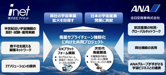 アイネットの有人/無人宇宙機の開発・試験・運用の知見と、全日空商事の航空産業サプライチェーンの知見・ネットワーク・商社機能を組み合わせて、日本の衛星サプライチェーンの強化を後押しし、衛星の量産化に向けた変革に挑んでまいります。航空産業を主軸に様々な産業界の知見と、宇宙産業の知見を結びつけられる、結節点としての役割を両社が果たせるよう努めてまいります。