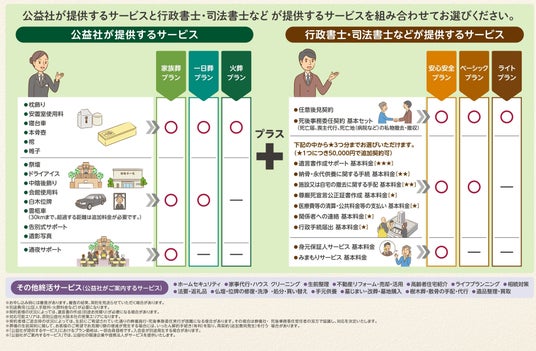 ◆商品ラインナップ:下記の公益社が提供するサービスと行政書士・司法書士などが提供するサービスを組み合わせて利用。