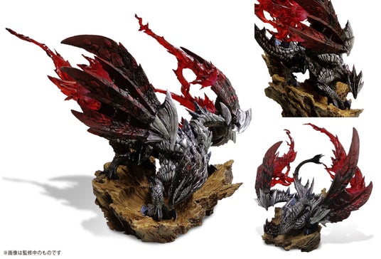 龍気が活性化し、体色を変化させた怒れるバルファルクが地表に降り立った様を表現。翼からのびる龍気エフェクトはクリア素材をふんだんに使用し、台座にはクレーターを造形した豪華な仕上がり。前回お買い逃がしの方はぜひゲットしよう!!
