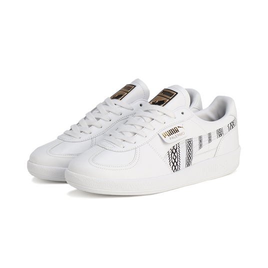 また、シューズには、コラボレーション第1弾で大好評を博したフットボールシャツのデザインを基に、ゲーム内で象徴的なアイコンやロード画面に描かれる紋様をフォームストリップにプリントした「PALERMO LTH(パレルモ レザー)」がラインナップ。プーマのテラススタイルを象徴するこのスニーカーは、ファッション性とゲームの世界観を融合させた魅力的な一足となっています。