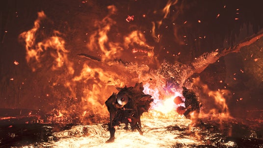 独特の形状をした翼が特徴の本作のメインモンスター「アルシュベルド」との対峙