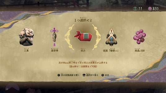 毎夜、各猛襲(ウェーブ)の区切りごとに報酬が手に入ります。提示される報酬の中から、自身のプレイスタイルや戦局に合わせてどの報酬を手に入れるか選択しましょう。報酬の種類には、攻撃力、防御力、行動速度が一定期間向上する能力強化をはじめ、村人の職業、鍔、結晶、追加の村人などいろいろな要素が存在します。