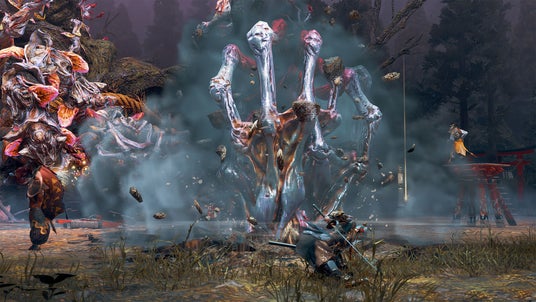 強敵「血の穢れ」も出現。歯応え抜群のプレイモードだキャプション:鳥居の裏から繋がる「畏界」が闘いの舞台