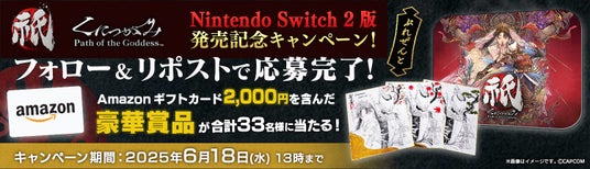 Nintendo Switch 2 版『祇(くにつがみ):Path of the Goddess』の発売と、エクストラコンテンツ「畏界遷宮」の配信を記念して、抽選で合計33名様に豪華賞品が当たるキャンペーンを開催いたします。